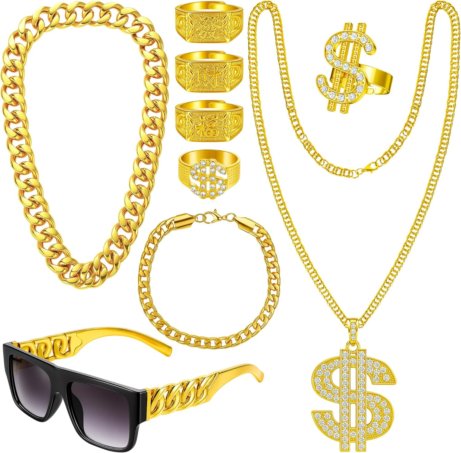 QZYL 80s 90s Accessories Outfit Accessories Hip Hop Costume Kit Faux Gold Rope Chain Bracelet Dollar Sign Chain