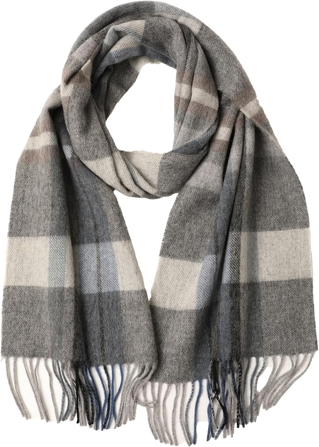 100% Merino Wool Plaid Tassel Scarf for Women and Men, Winter Warm Long Scarves, Large Travel Blanket Scarf Wrap in Gift Box