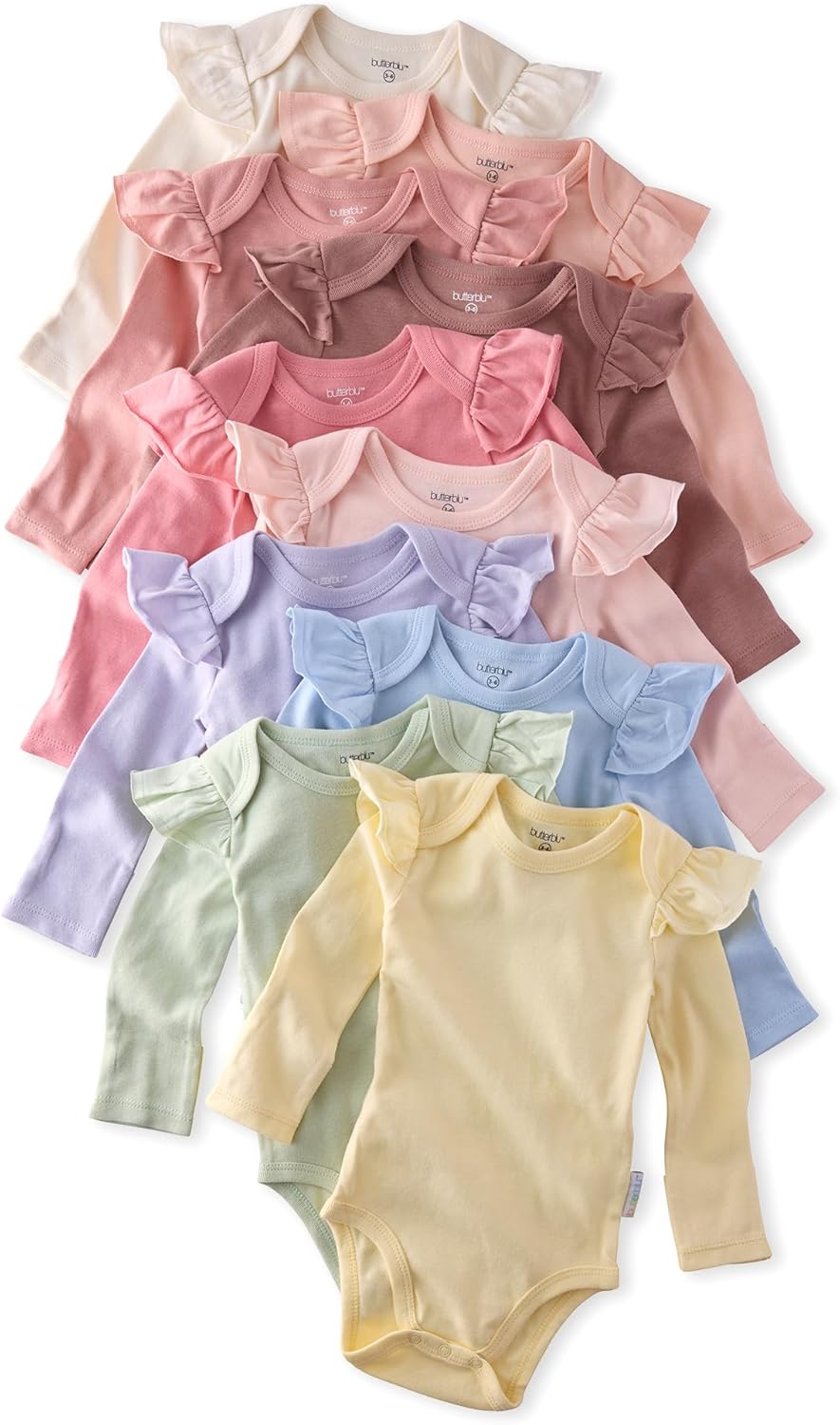 Ashley 10-Pack Long Sleeve Ruffle Shoulder Bodysuits 100% Organic for Baby Girls