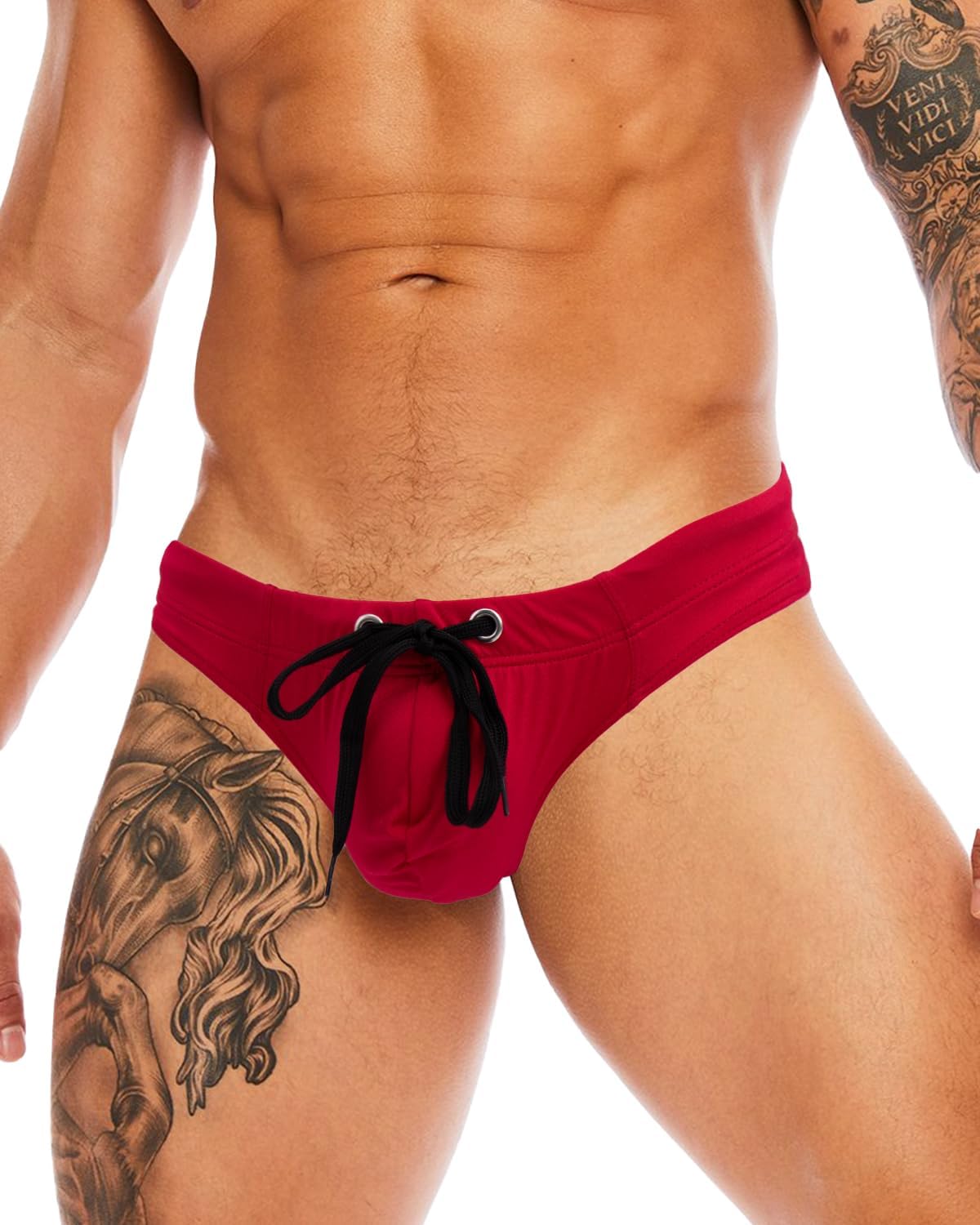 MIZOK Mens Sexy T-Back Thong Swimsuit G String Pouch Swimwear Quick Dry Bikini with Drawstring