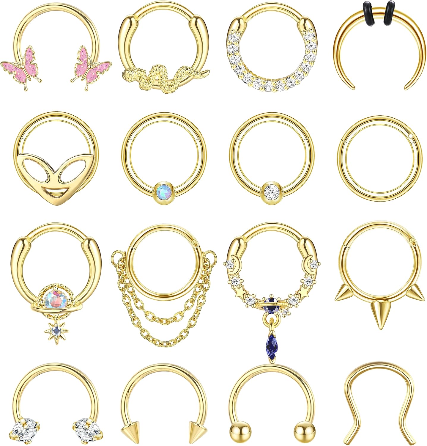 LOYALLOOK 16Pcs 16G Septum Rings Hoop for Women Men Surgical Steel Dangle Septum Jewelry Septum Clicker Horseshoe Nose Rings Hoop Hinged Segment Daith Helix Tragus Cartilage Earrings Piercing