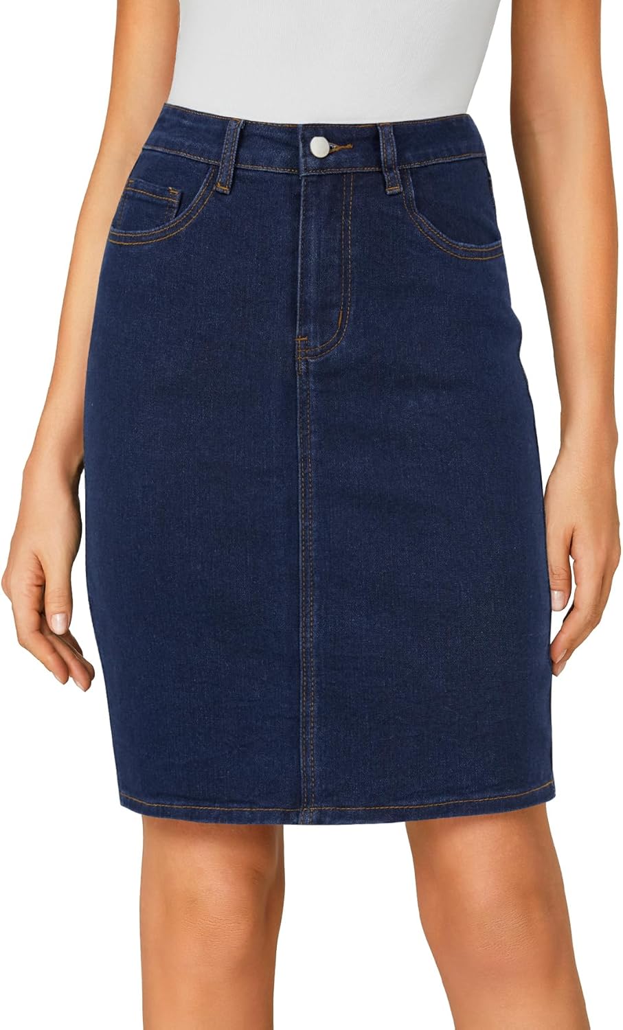 LYANER Women's Casual Stretch High Waist Bodycon Denim Jean Midi Skirt with Pockets
