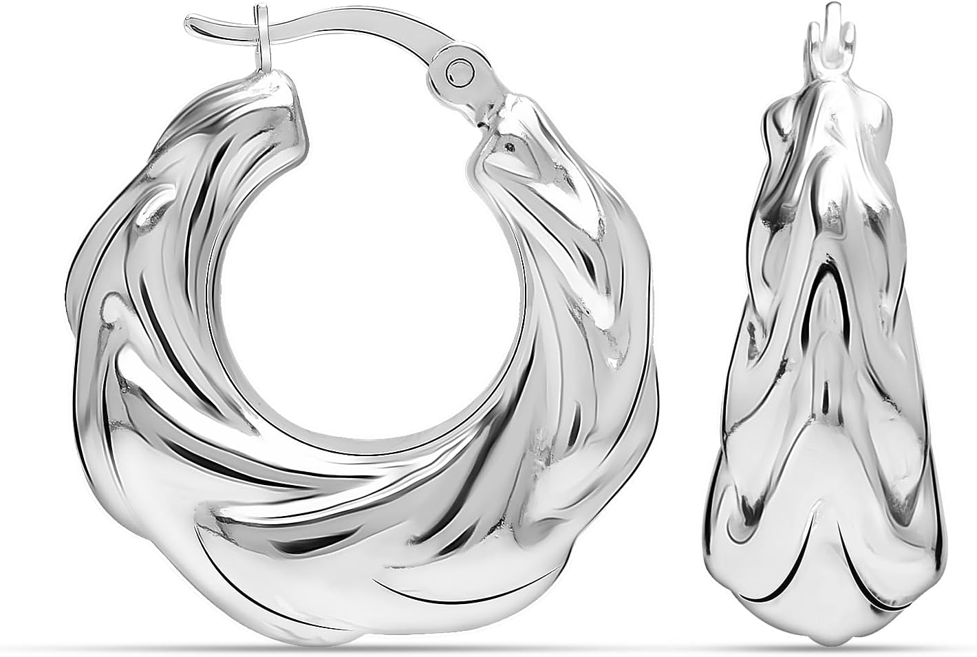 LeCalla 925 Sterling Silver Chunky Hoop Earrings | Lightweight Classic Handmade Electroform Hollow Hoops | Italian Design Shrimp Earrings Hoop for Women