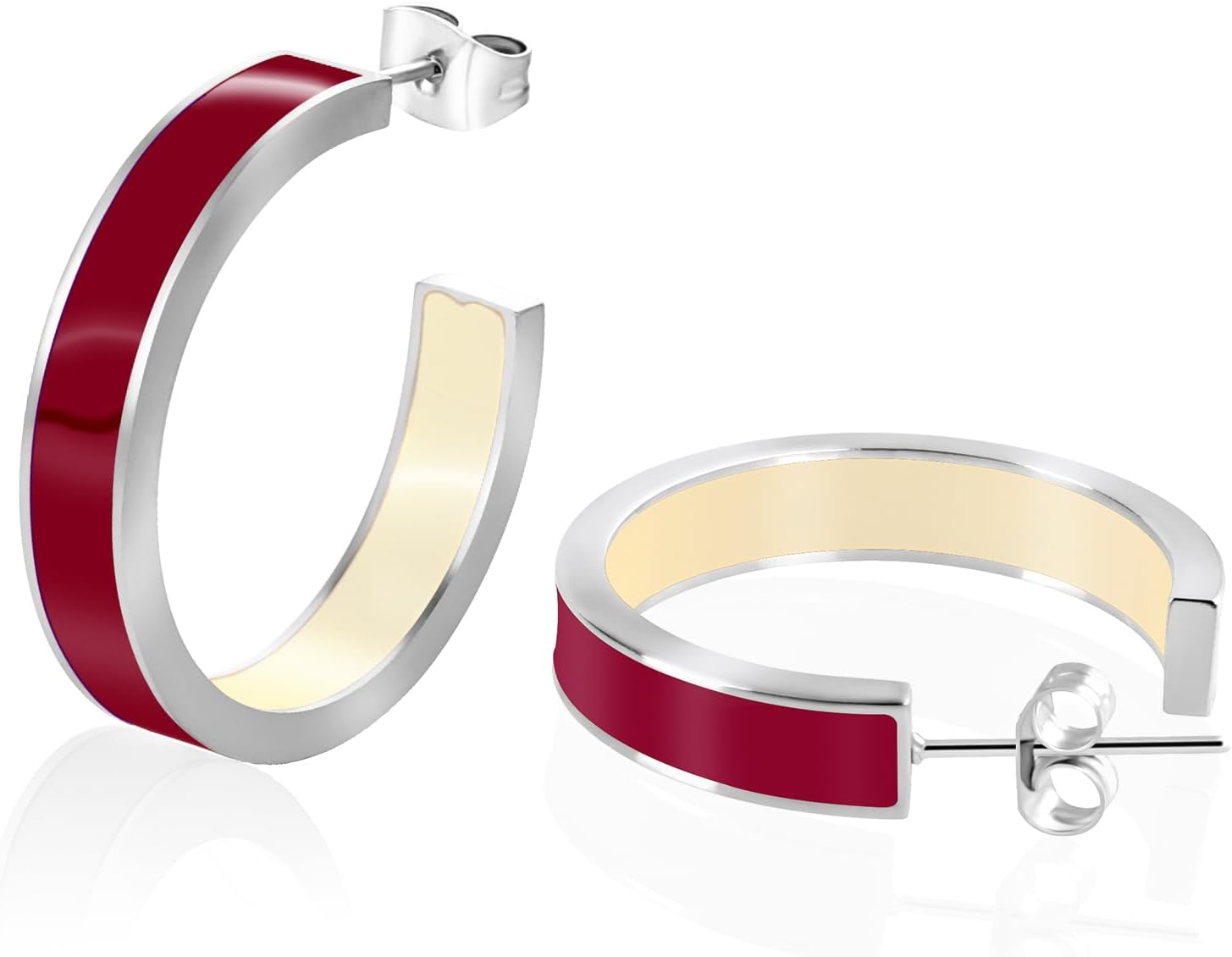 Chunky Gold Earrings for Women C Shaped Round Hoop Earrings 18K Gold Plated Stainless Steel Enamel Earrings Jewelry Gift