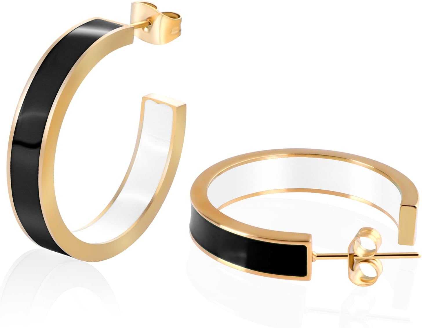 Chunky Gold Earrings for Women C Shaped Round Hoop Earrings 18K Gold Plated Stainless Steel Enamel Earrings Jewelry Gift