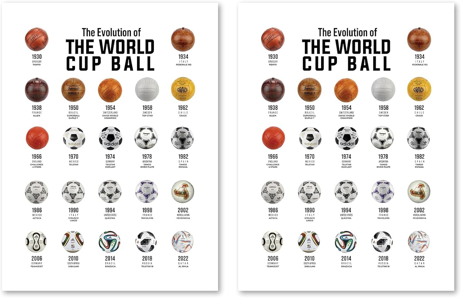 ishenkea 2 Pcs Evolution Of The World Cup Poster,Unframed Soccer Poster For Man Cave、Boys Room Decor (12x16 Inches)