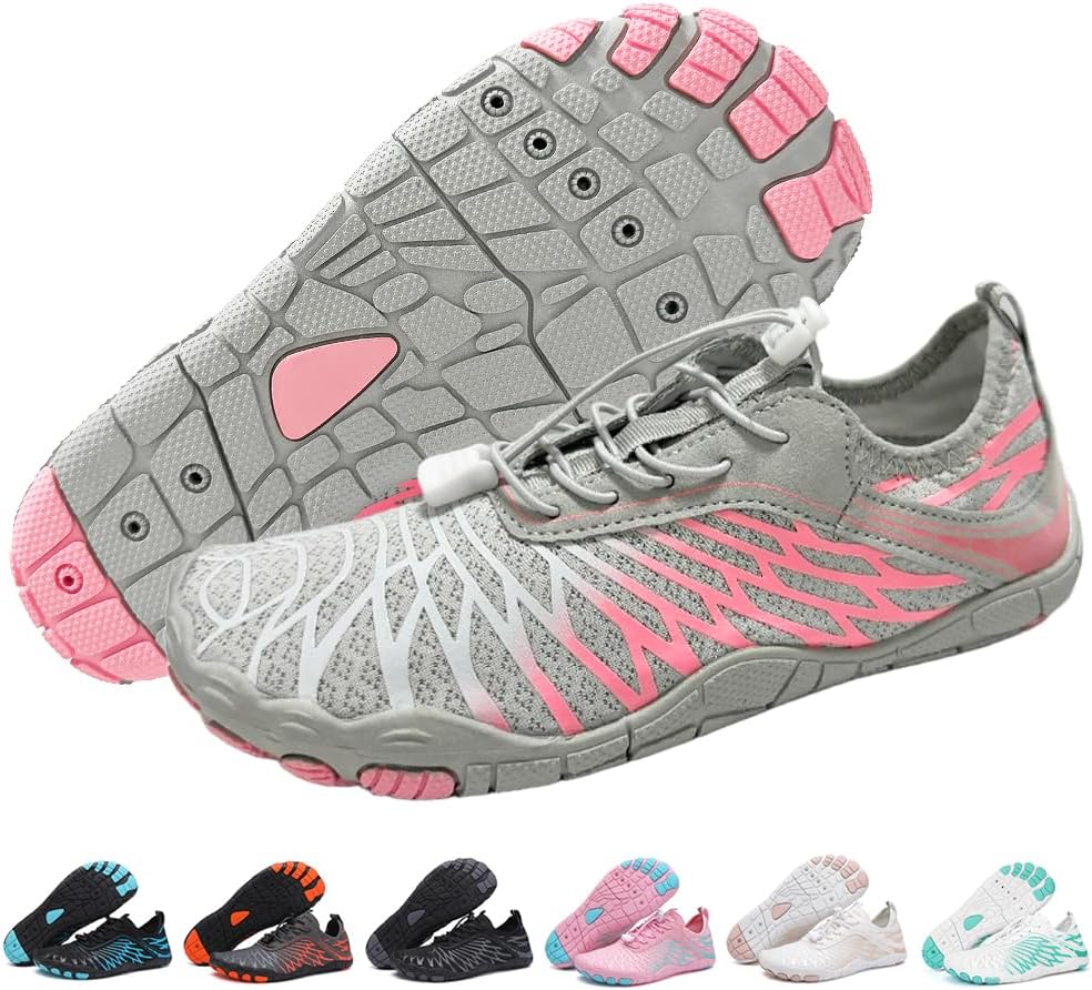 Hiking Footwear Barefoot Shoes Womens,Pro-Healthy&Non-Slip Water Shoe for Women Men, Wide Toe Running Shoes (PinkGreyA,11.5Women/10Men)