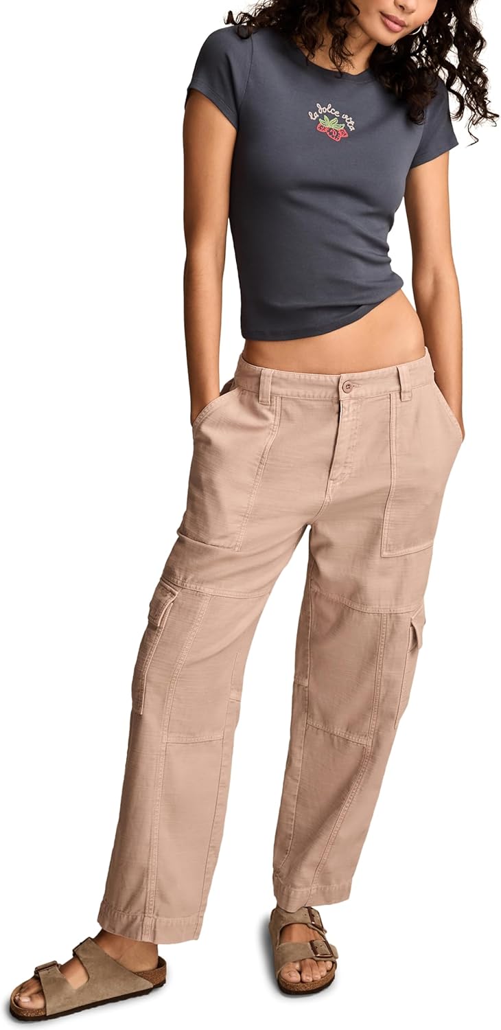 Lucky Brand Womens Straight Leg Slub Cargo Pant