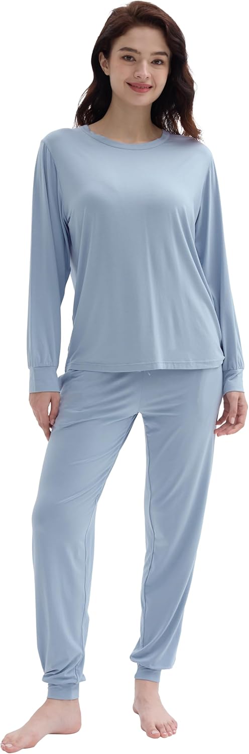 Joyaria Viscose Made from Bamboo Pajamas for Women Long Sleeve Jogger Pjs Set with Pocket &Drawstring