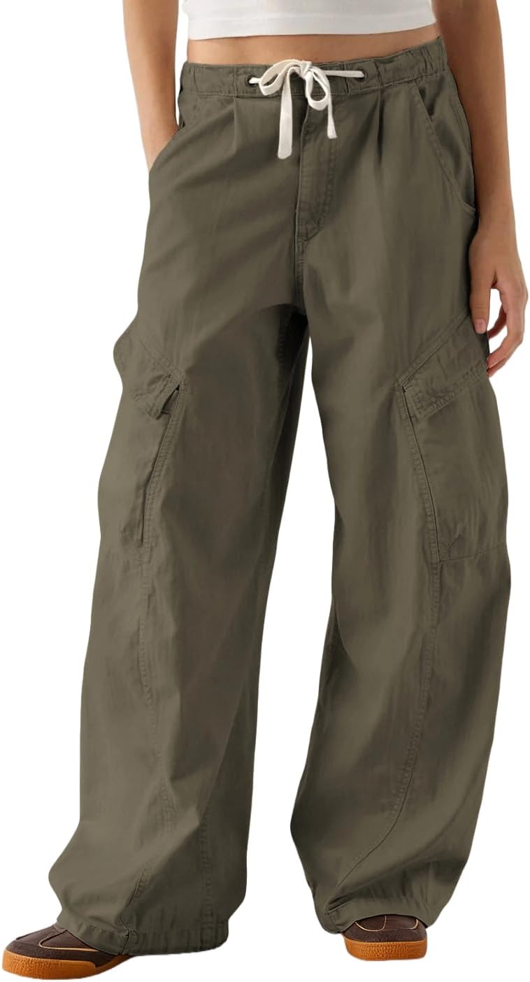 Majdan Cargo Pants for Women Y2K Jeans High Waisted Wide Leg Streetwear Pants with 6 Pockets Drawstring Casual Pants