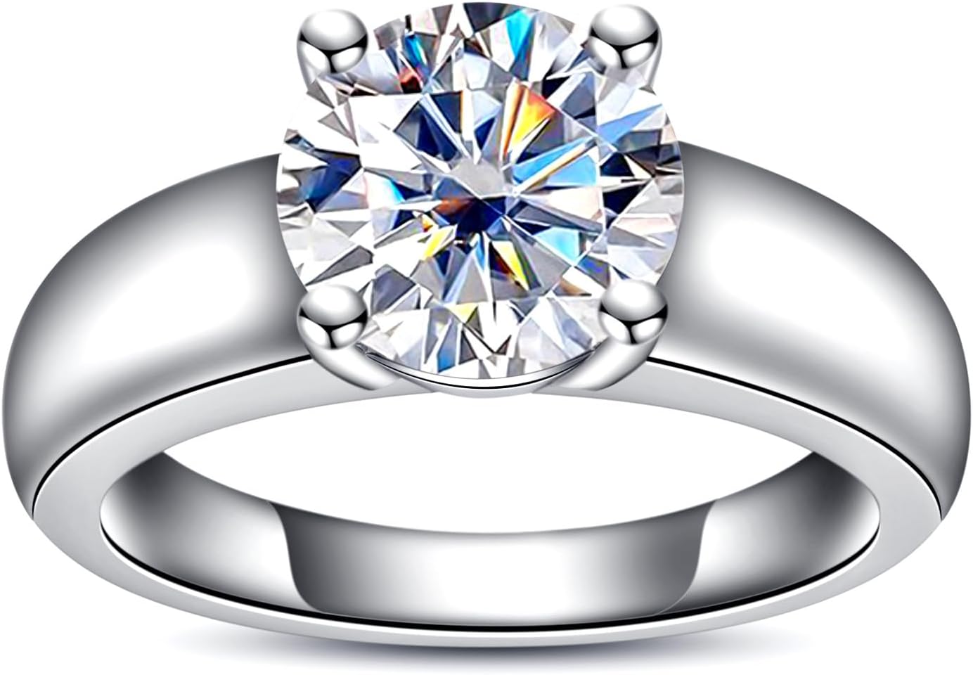 Moissanite Engagement Ring, 3CT D Color Solitaire Moissanite Rings 14K Gold Plated 925 Sterling Silver Moissanite Wedding Band Promise Rings for Women with Certificate