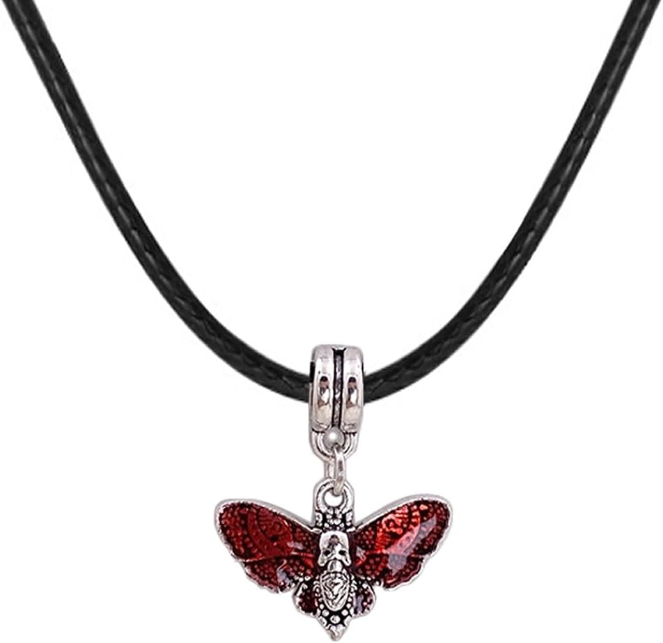 MOKAVIKY 25 Black Moth Pendant Necklace for Men Women Punk Skull Butterfly Moth Animal Necklace (Red)