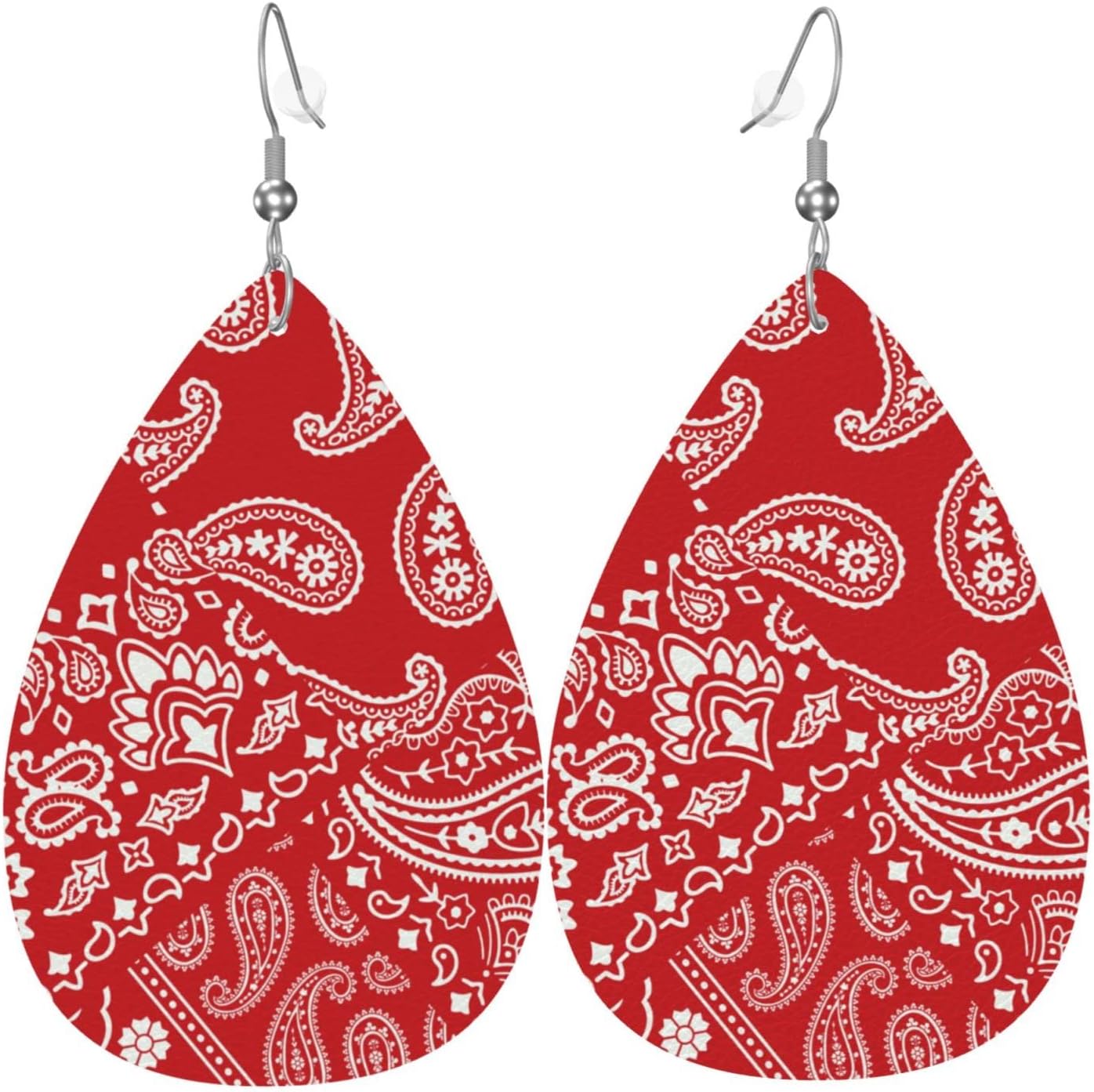 Red Bandanna Paisley Faux Leather Teardrop Earrings for Women Drop Dangle Earrings