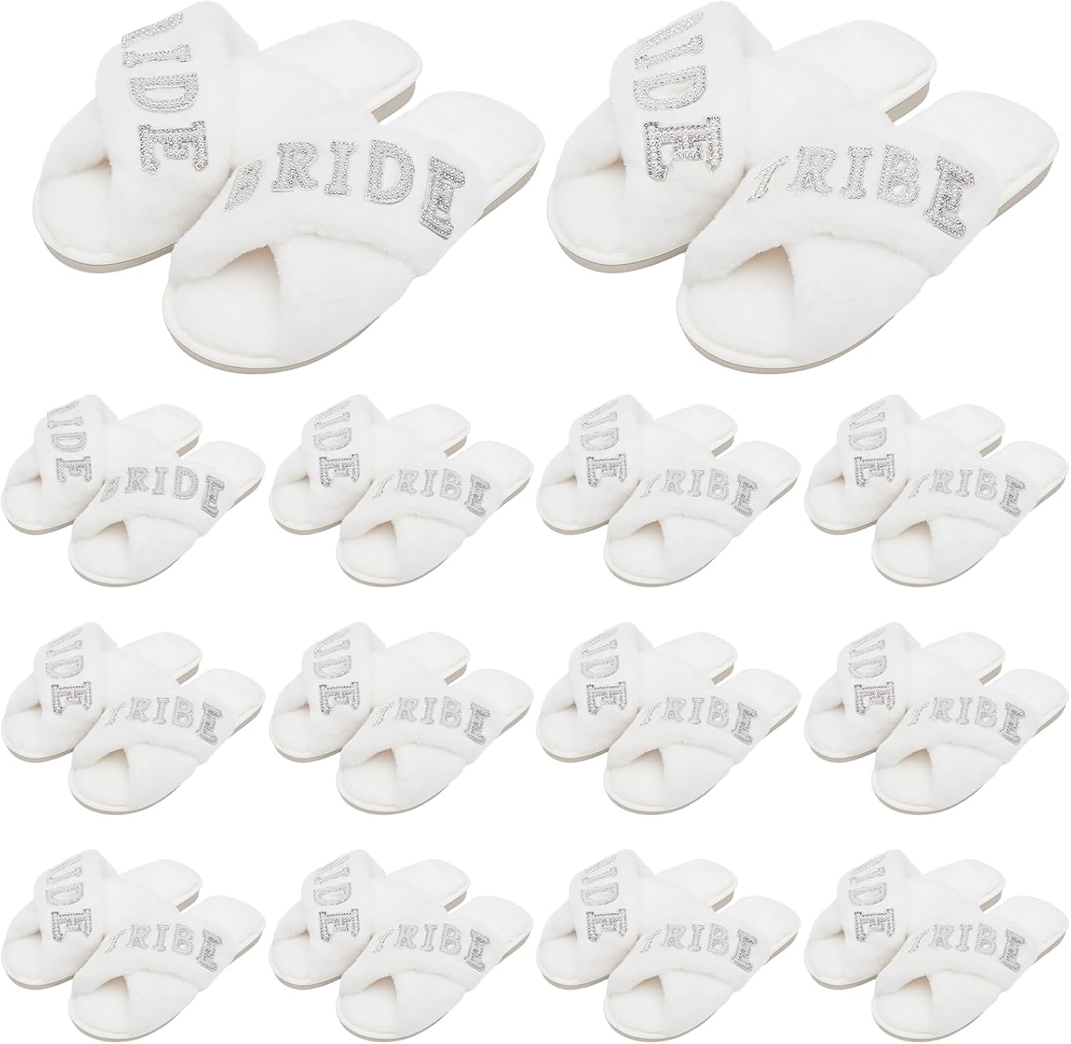 Ramede 12 Pairs Women's Fuzzy Slippers Bulk Wedding Bridesmaid Slippers Cross Band Open Toe Bride Shoes for Bridal Bachelorette Party
