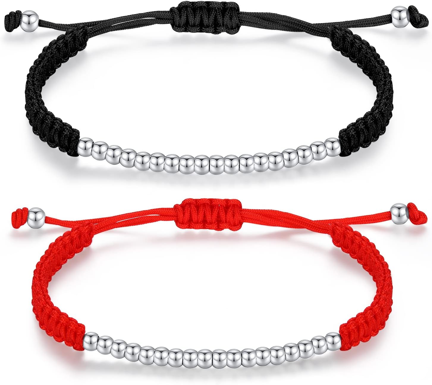 JAYUMO 2 Pcs Matching Couples Bracelets for Men Women Red Black Mix Infinity Love Lucky Bracelet Tibetan Lucky Amulet Knot Bracelet Woven Thread String for Friend and Peace and Protection