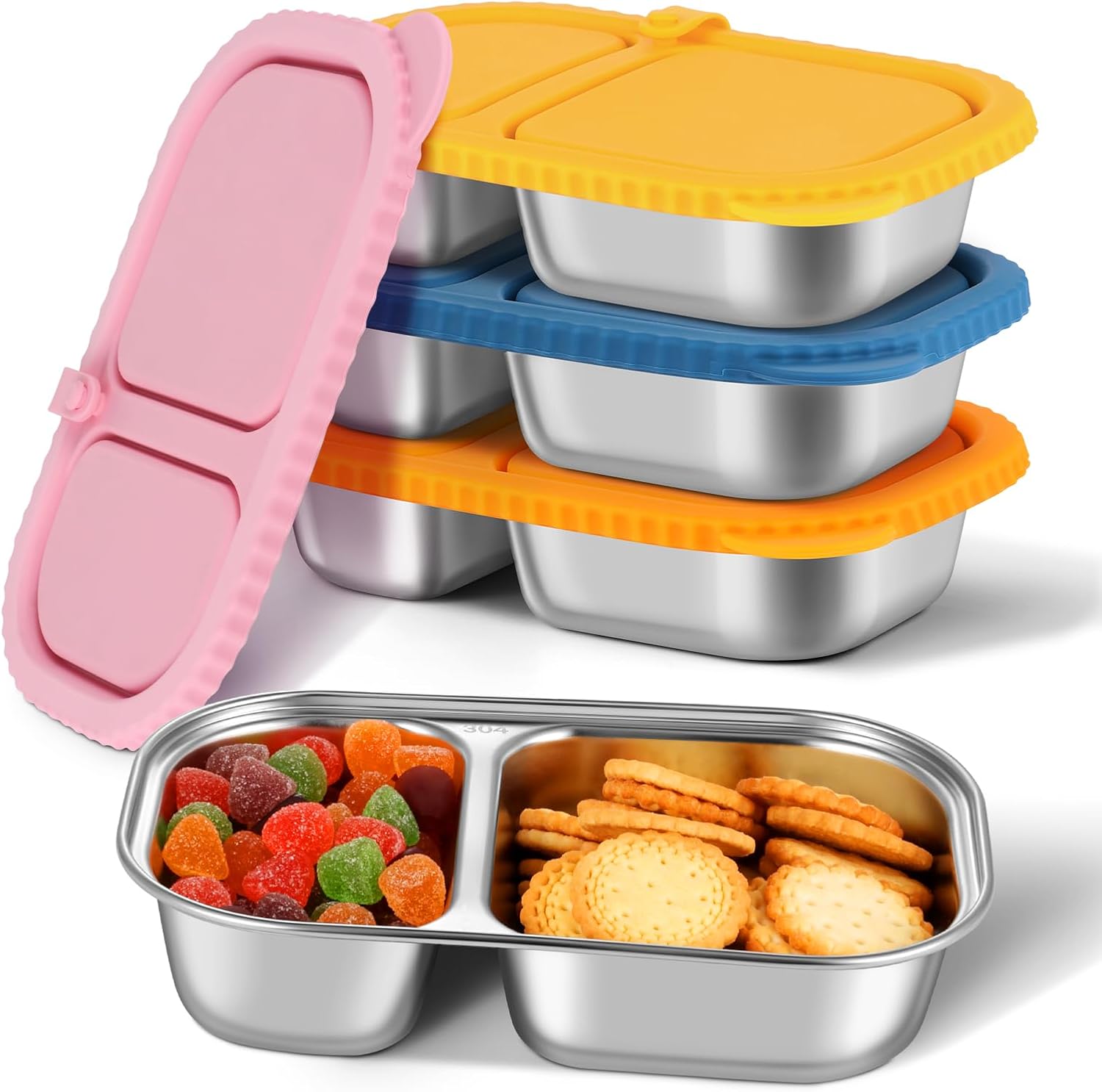 Stainless Steel Snack Containers with Silicone Lids