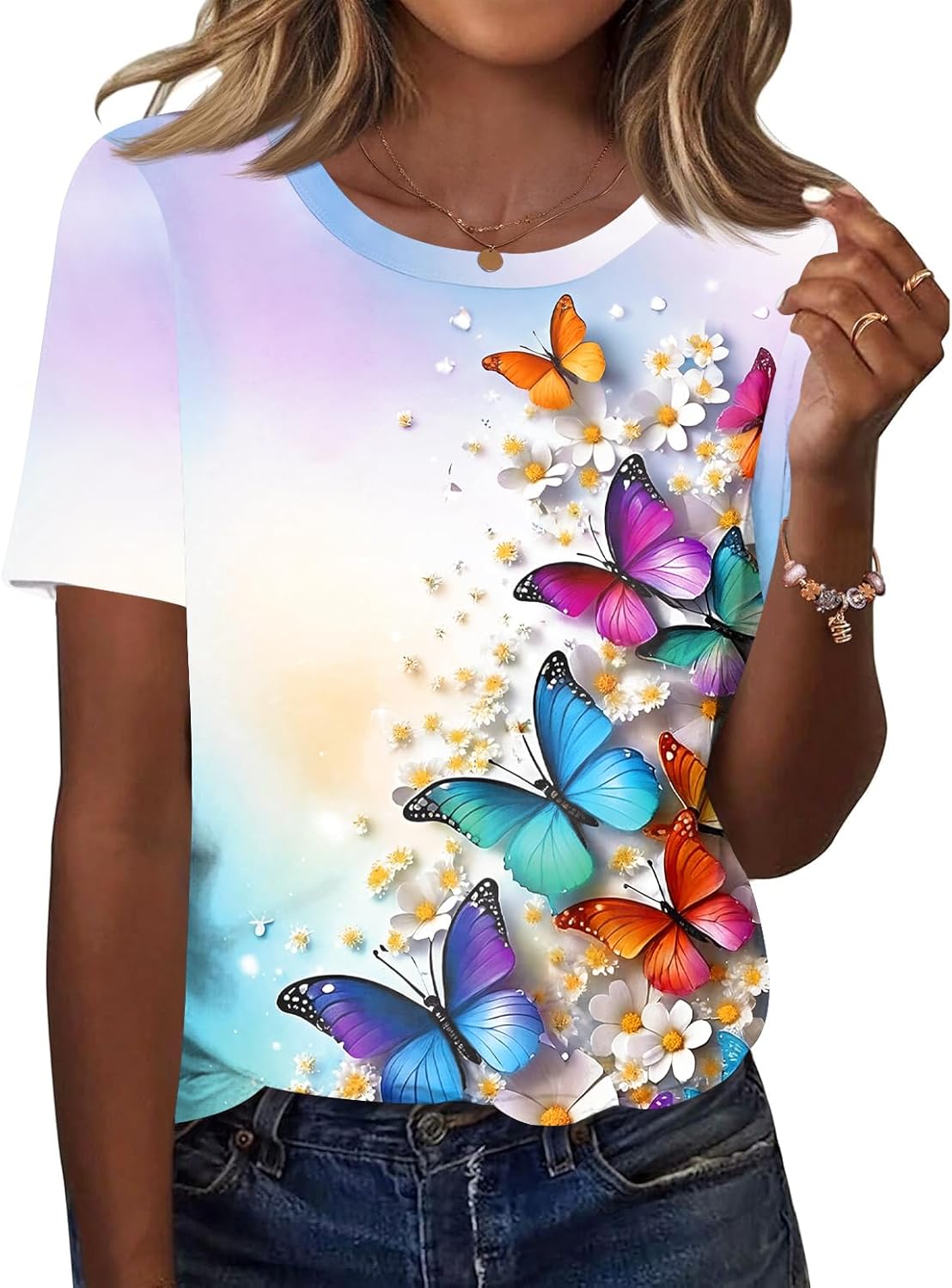 TCOT Women's Tops Summer Short Sleeve Crew Neck Shirts Dressy Casual Blouses for Women S-3XL