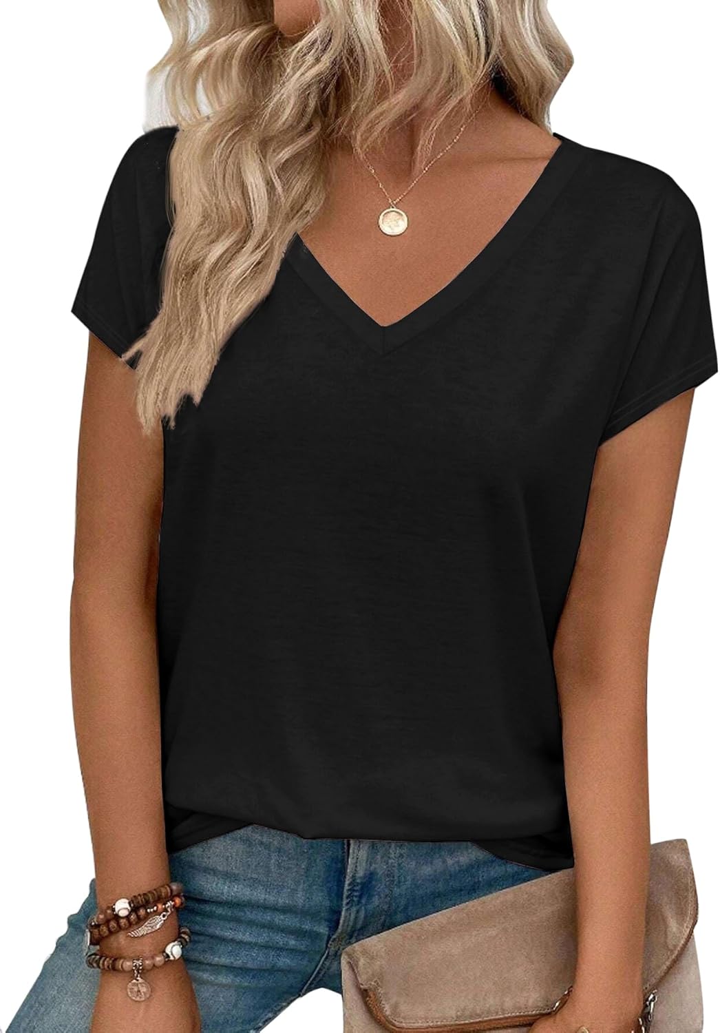 T Shirts Short Sleeve V Neck Tshirts Womens Summer Tops Casual Dressy Basic Tees Going Out Beach Clothes