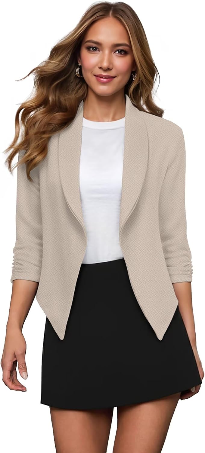 Hybrid & Company Lightweight Open Front Cardigan Classic Ruched Sleeve Work Office Blazer Suit Jackets