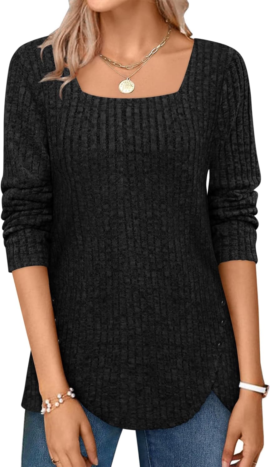 BZB Women's Sweaters Fall 2024 Lightweight Long Sleeve Square Neck Tunic Tops