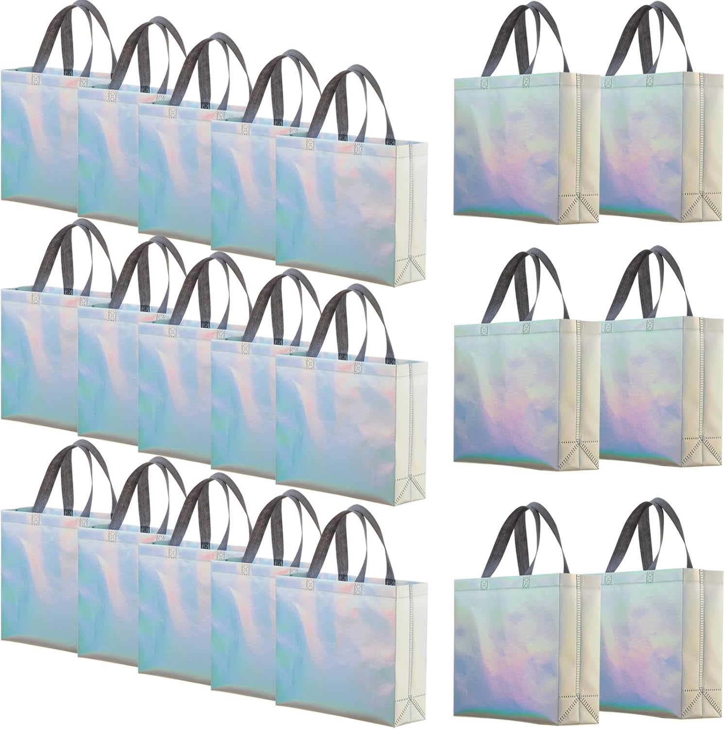 - Reusable Materials: Made from eco-friendly non-woven material, these holographic reusable gift bags with handles feature sturdily stitched handles from the inside, offering a close-like feel. These iridescent reusable grocery bags are thicker and more sturdier than regular string-handled bags, perfectly holding your goodies and gifts.