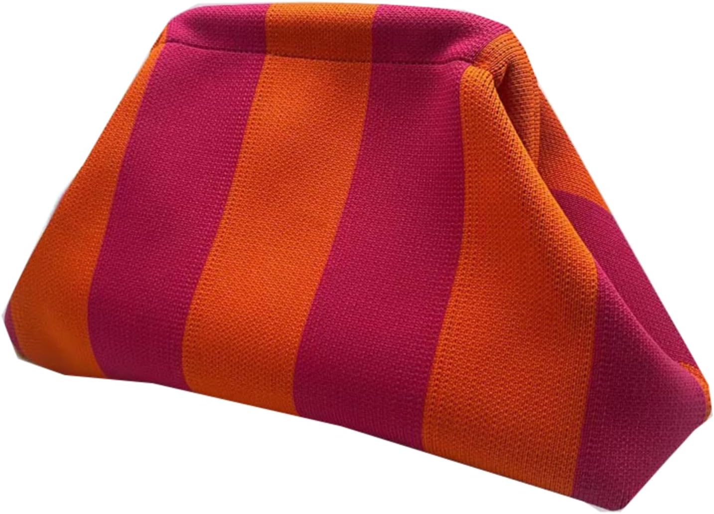 Women Clutch Purses,Summer Beach Woven Crochet Bag 2025,Evening Handbag Dumpling Striped Ruched Cloud Purse