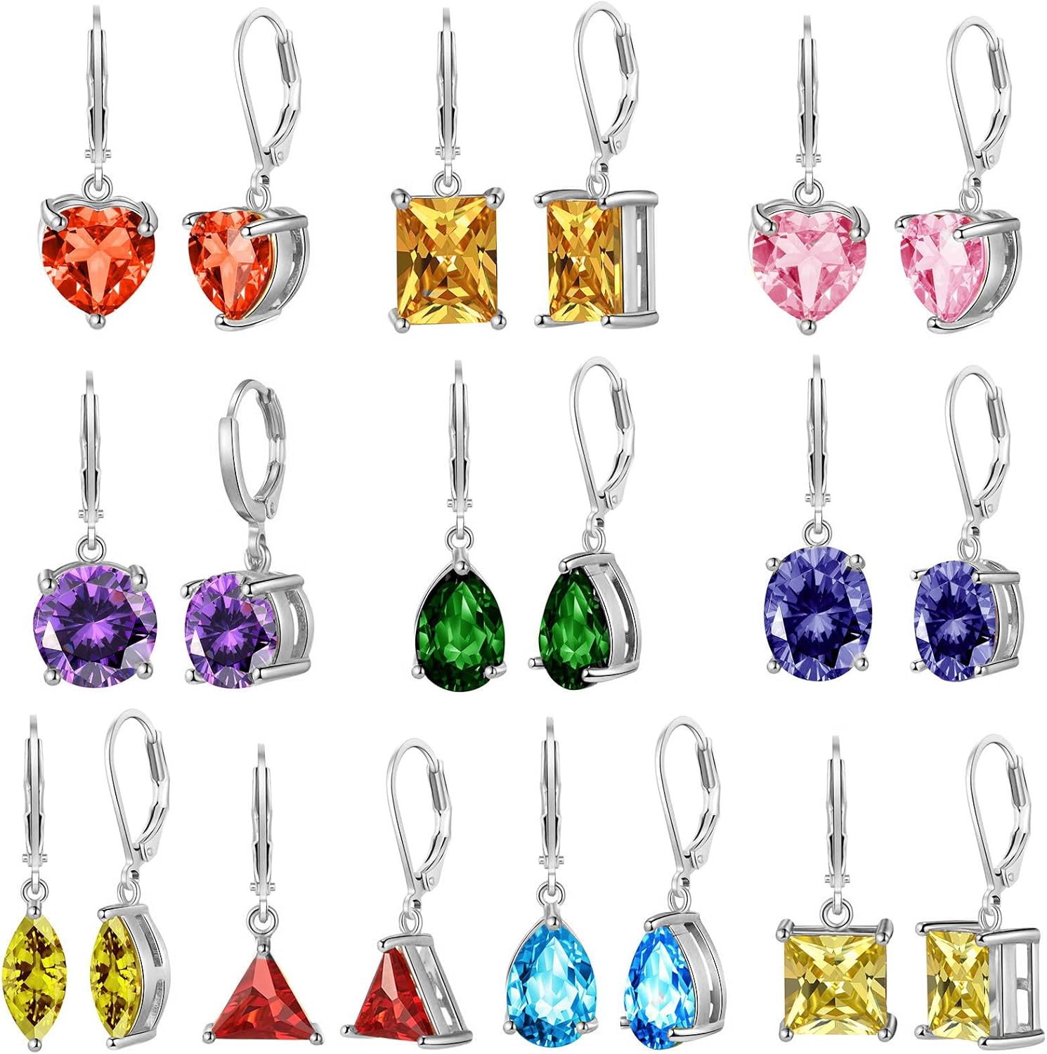 10 Pairs Dangle Earrings for women Fashion Pack- Flawless Cubic Zirconia Leverback Earrings for Teens Girls with Silver/Gold -Hoop