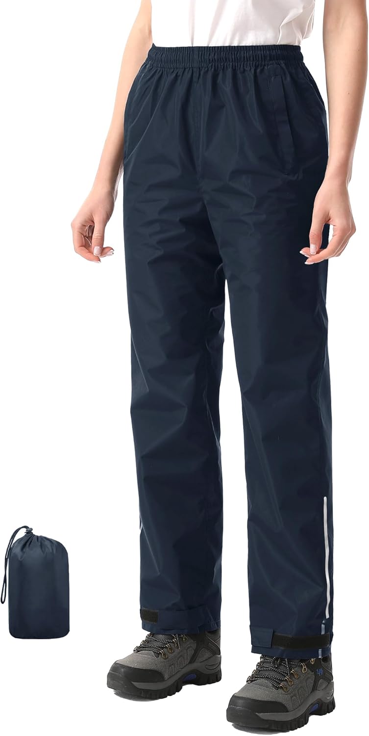 iCreek Women's Waterproof Rain Pants Packable Hiking Pants Over Pants Windproof Lightweight for Outdoor Hiking Golf Fishing