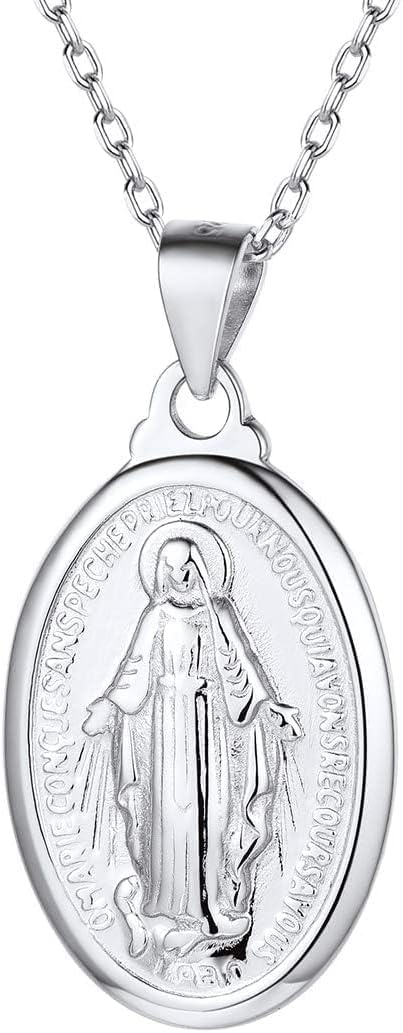 Nofade Silver Personalized Virgin Mary Necklace 925 Sterling Silver Religious Christian Jewelry Oval Medal Coin Pendant Necklace for Women Men