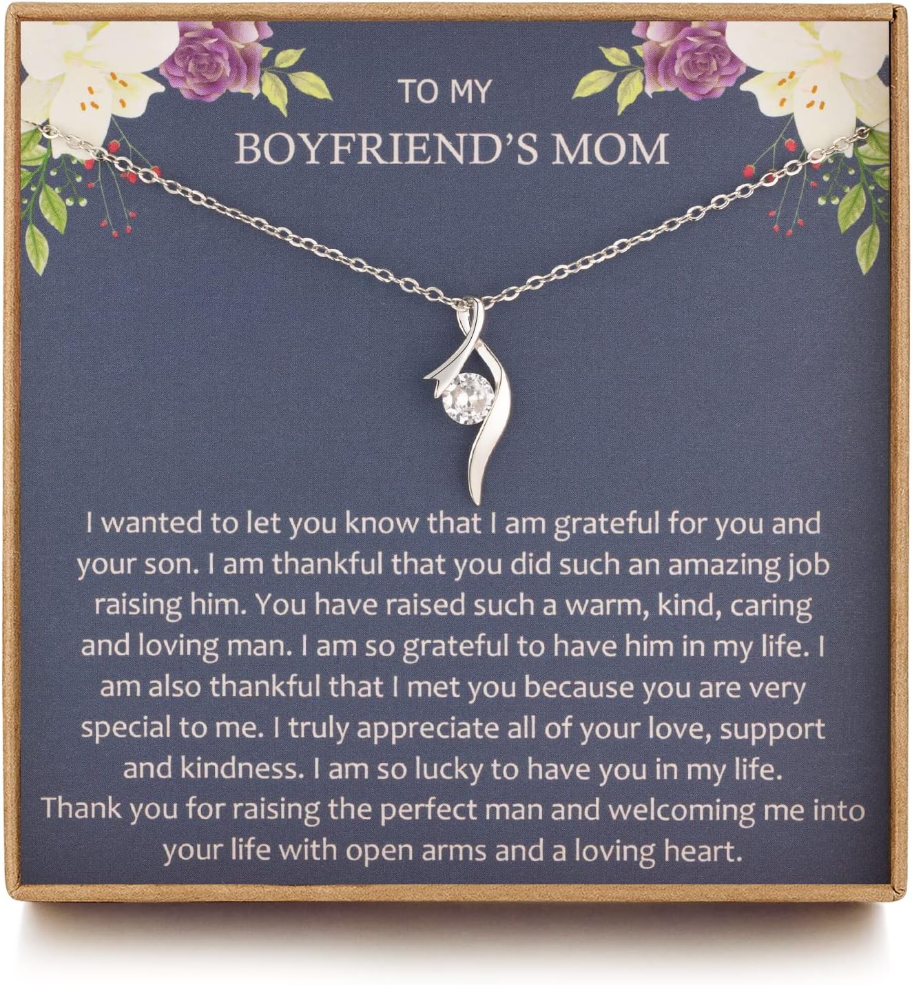 Gift to My Boyfriend's mom Necklace, Sterling Silver CZ Necklace, Gift for Boyfriends Mom, Mothers Day Jewelry Christmas Gift