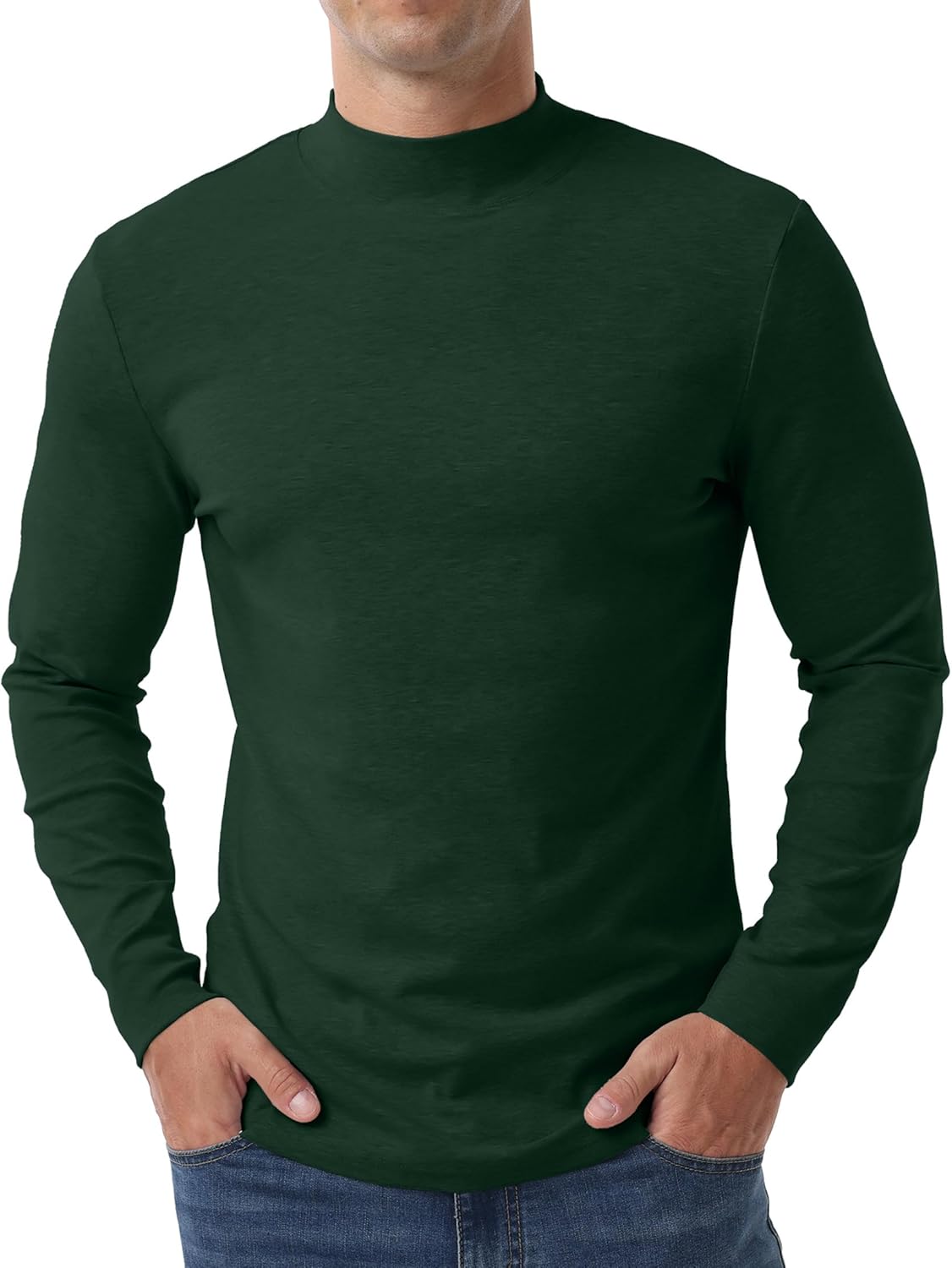Askdeer Men's T-Shirts Cotton Mock Turtleneck Long Sleeve Shirts Lightweight Thermal Pullover Sweaters