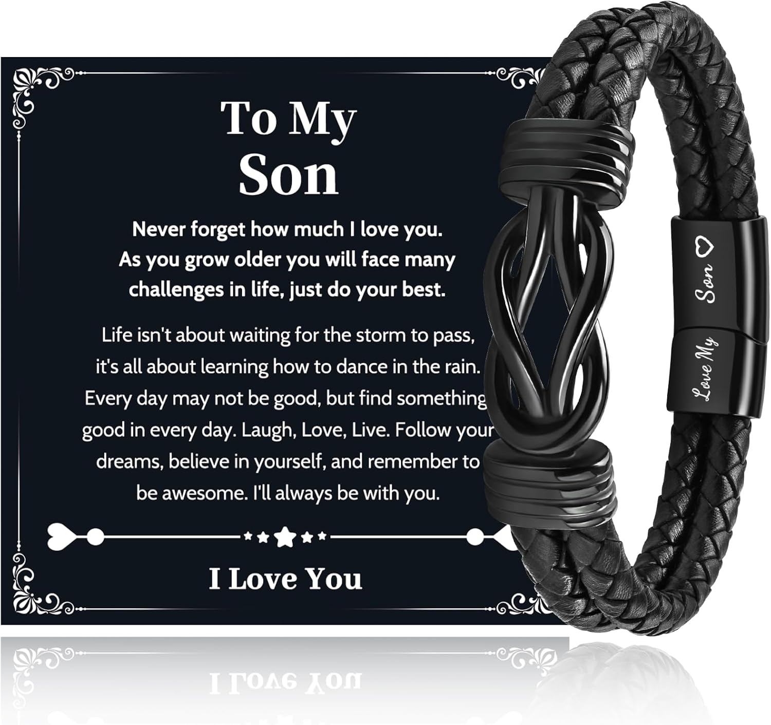 VU100 Gifts for Son/Man/Brother Leather Bracelet for Men Inspirational Gifts Valentine's Day Birthday Present for Boyfriend Husband Teenage