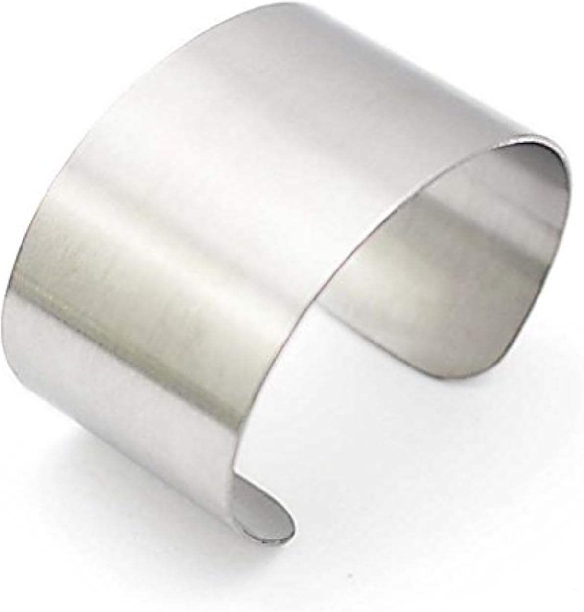Silver Wide Grooved Cuff Bangle for Women Lady Stainless Steel Shiny Punk Bracelet