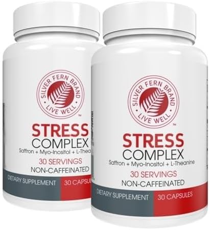 - Silver Fern Stress Complex - Without Caffeine. Contains 30 capsules. All-natural dietary supplement. Contains Saffron, L-Theanine, & Myo-inositol.