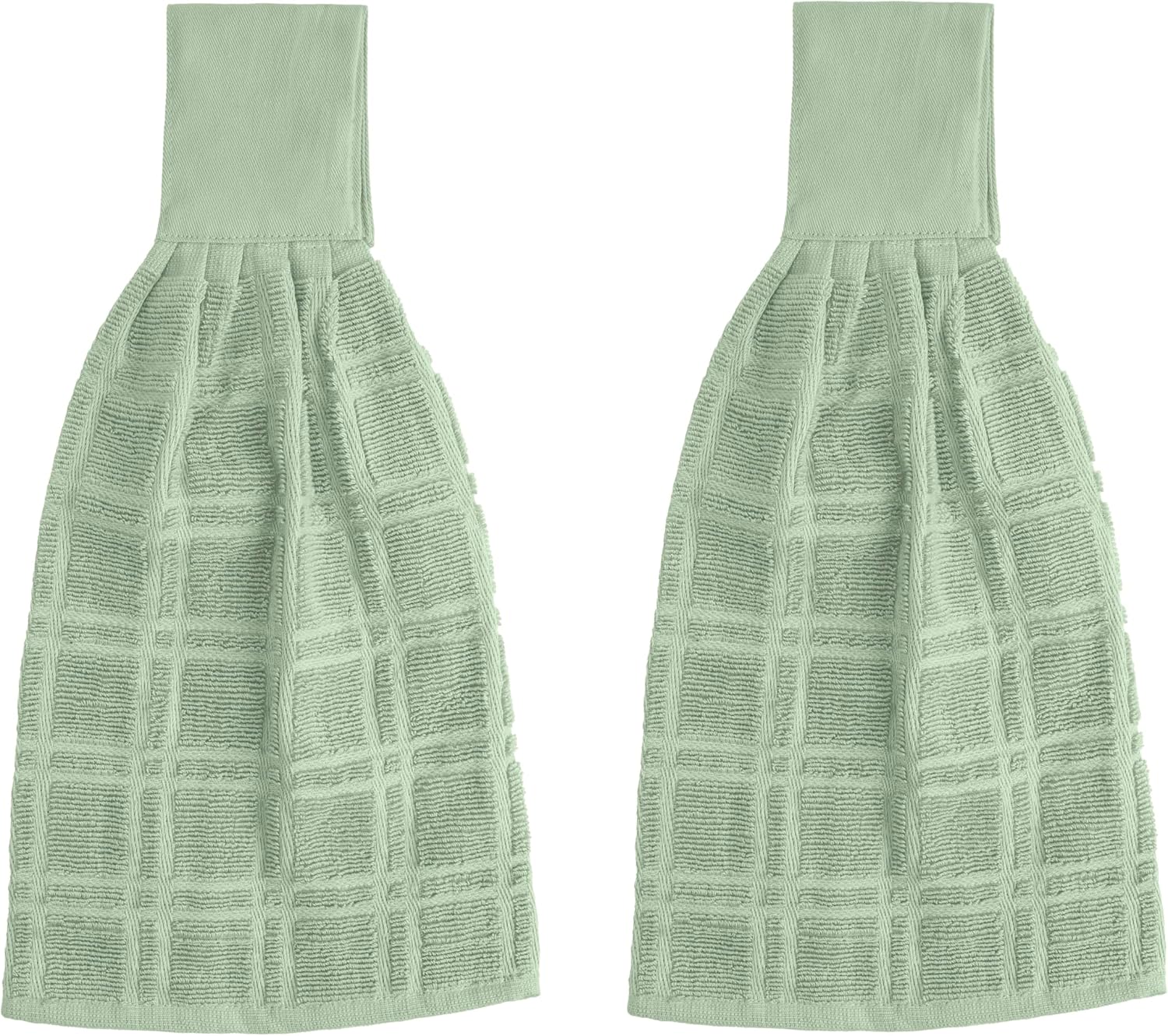 Blue Needles Hanging Kitchen Towels - Sage Green 100% Cotton Solid Kitchen Tie Towel, Set of 2 Hand Dish Cloth with Hanging Loops 9 x 17 Inches, Absorbent, Super Soft, and Fast Drying Home Essential