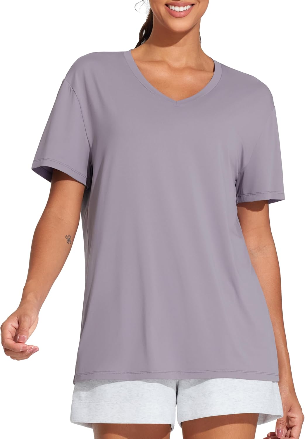 THE GYM PEOPLE Women's Short Sleeve Loose Fit T Shirts Basic Summer Casual V-Neck Breathable Workout Tee Tops