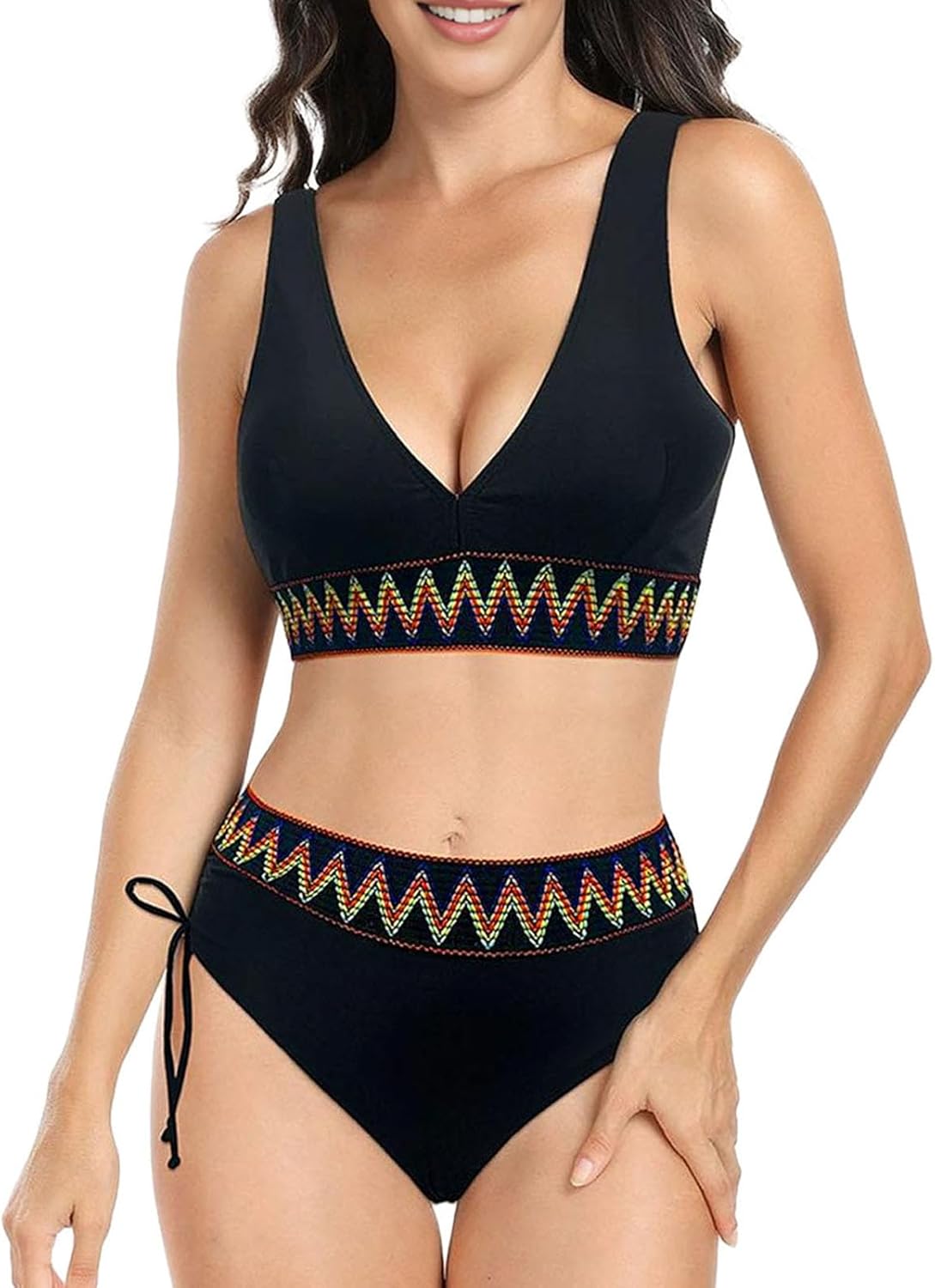 SWBALLETTO Women High Waisted Bikini Sets for Women Tummy Control Bathing Suits Color Block Drawstring Swimsuit