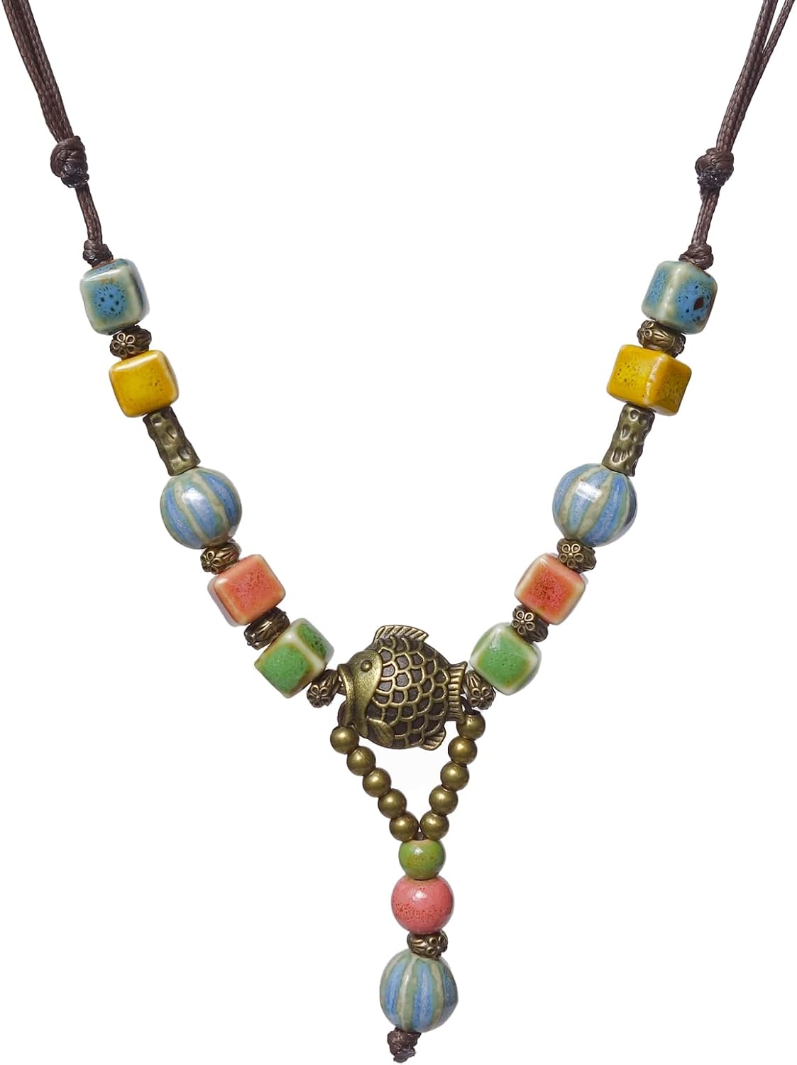 Adjustable Ceramic Beaded Necklace for Women, Boho Handmade Flower Pendant Necklace, Hippie Jewelry for Mom and Wife