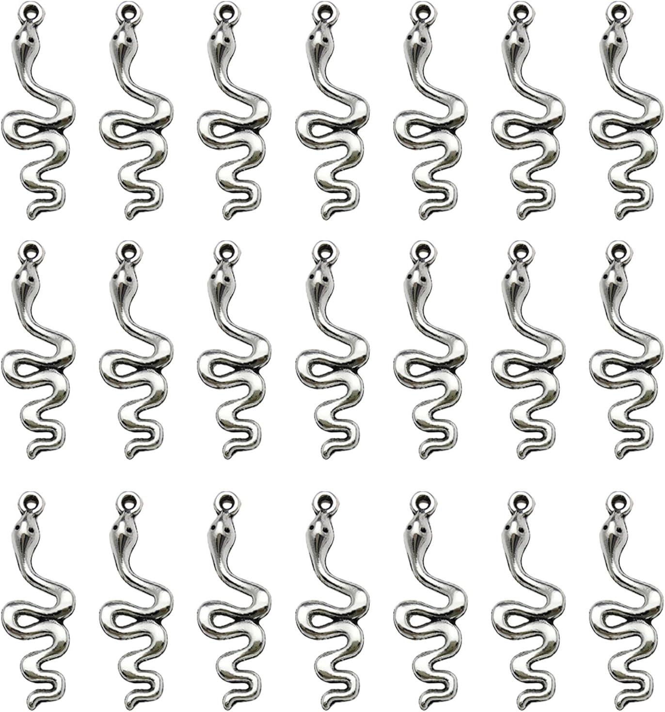 100pcs Snake Charms Antique Silver Tibetan Mini Snake Shape Charms Pendants for Jewelry Making DIY Craft Dangle Earring Bracelet Necklace Keychain Decoration