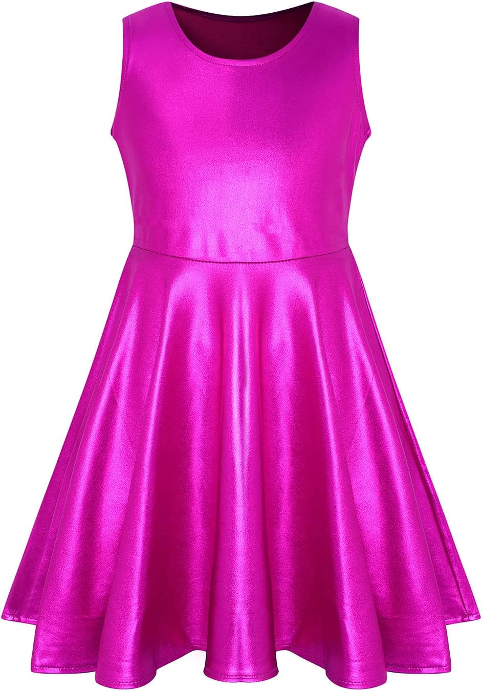 LUCKYGAL Girls Metallic Dresses Sparkly Shiny Party Twirl Dress Sleeveless Outfits
