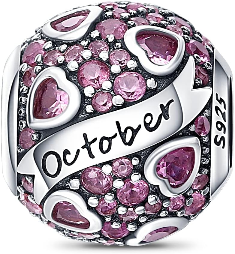 HappyStar 925 Sterling Silver Month Birthstone Charm for Bracelets Necklace,with 5A Cubic Zirconia Dangle Pendant Bead,Happy Birthday Valentine's Day