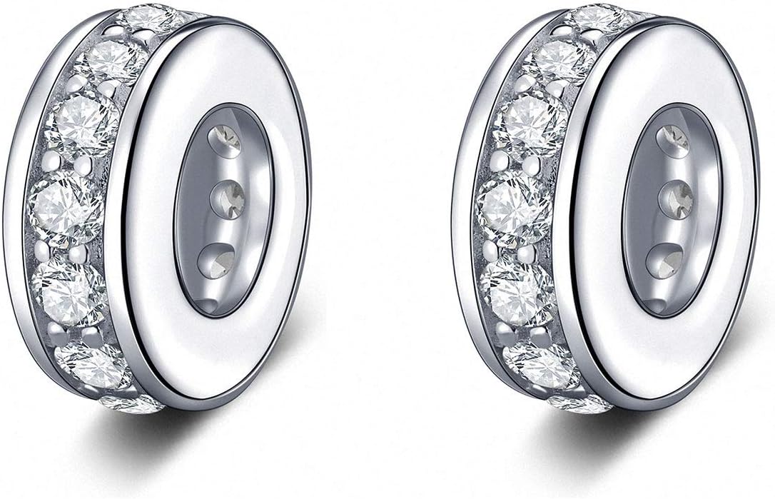 925 Sterling Silver Spacer Charm Bead with Clear CZ for Pandora Charms Bracelets