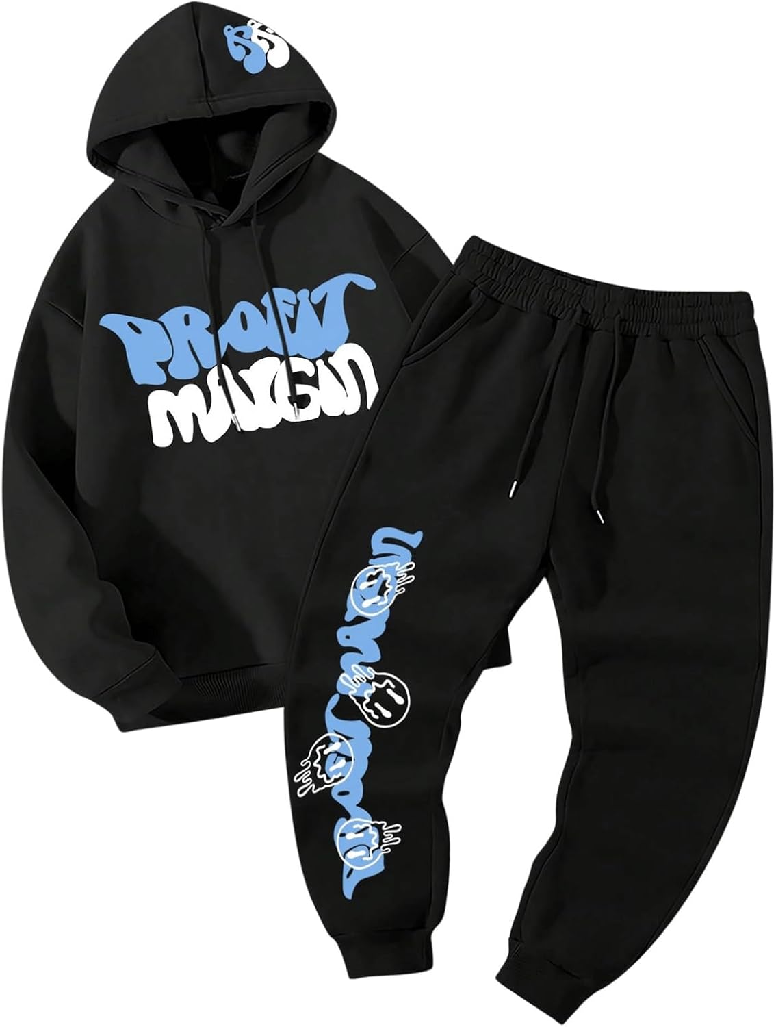 Men's 2 Piece Sweat Set Long Sleeve Graphic Hoodie Sweatshirts and Drawstring Joggers Tracksuits