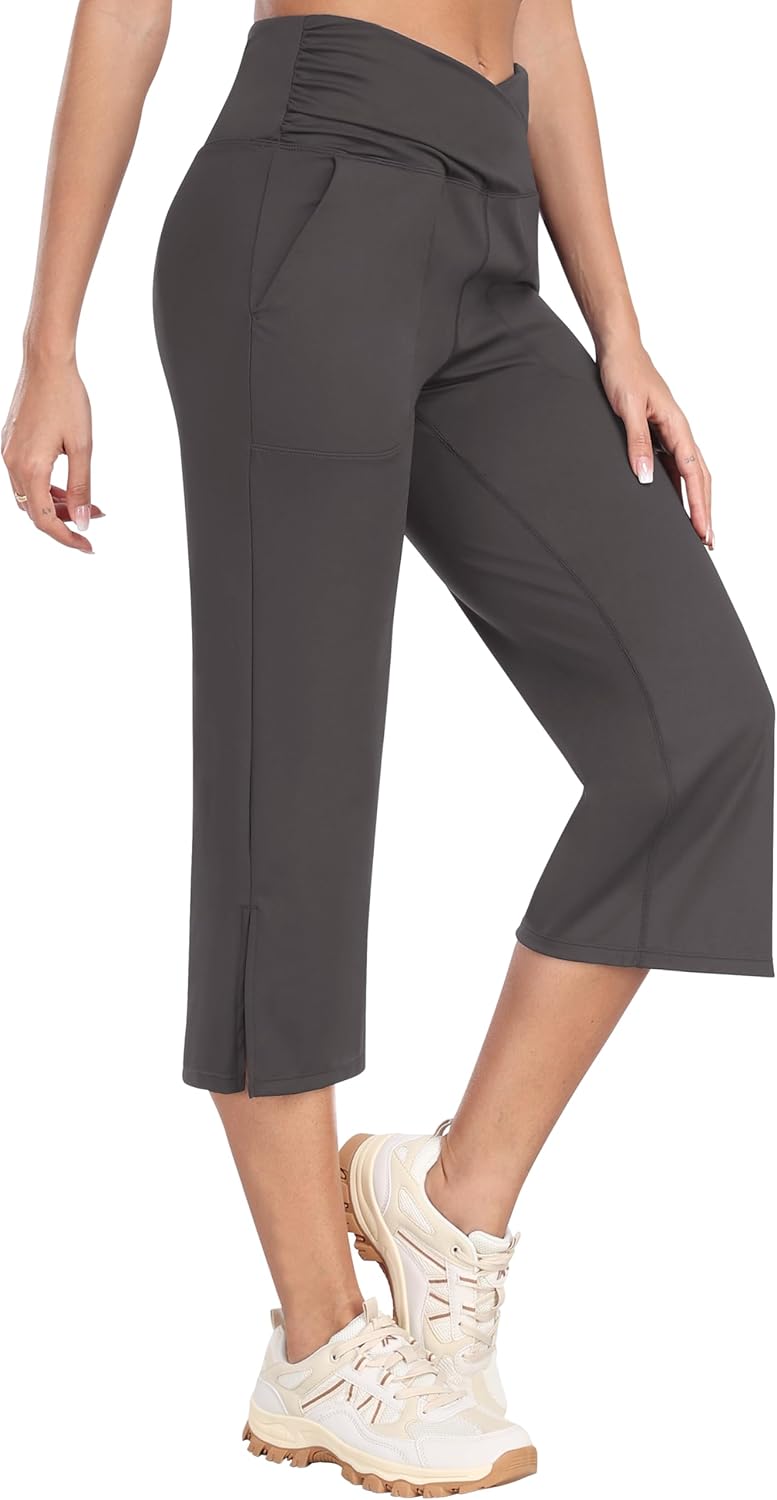 MoFiz Womens Yoga Capris Pants High Waist Lightweight Athletic Exercise Casual Wide Leg Yoga Pants with Pockets