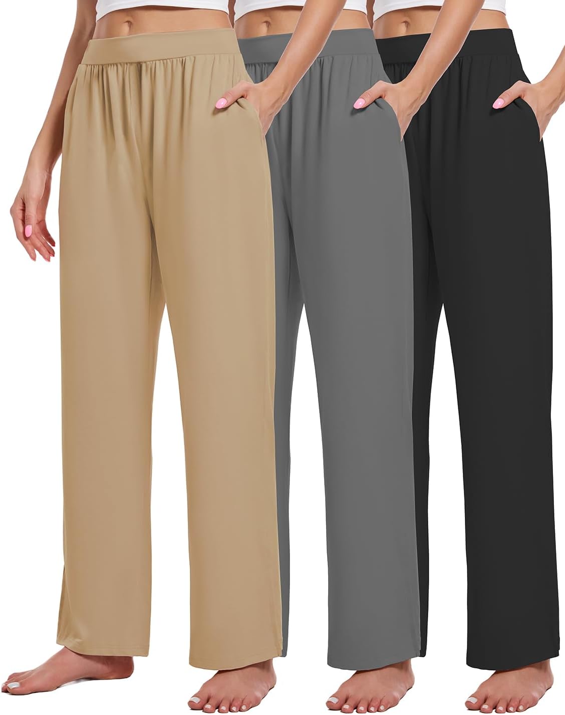 3 Pack Women's Lounge Pants Cozy Wide Leg Lounge Pants with Pockets Loose Flowy Yoga Sweatpants Workout Comfy Jogger