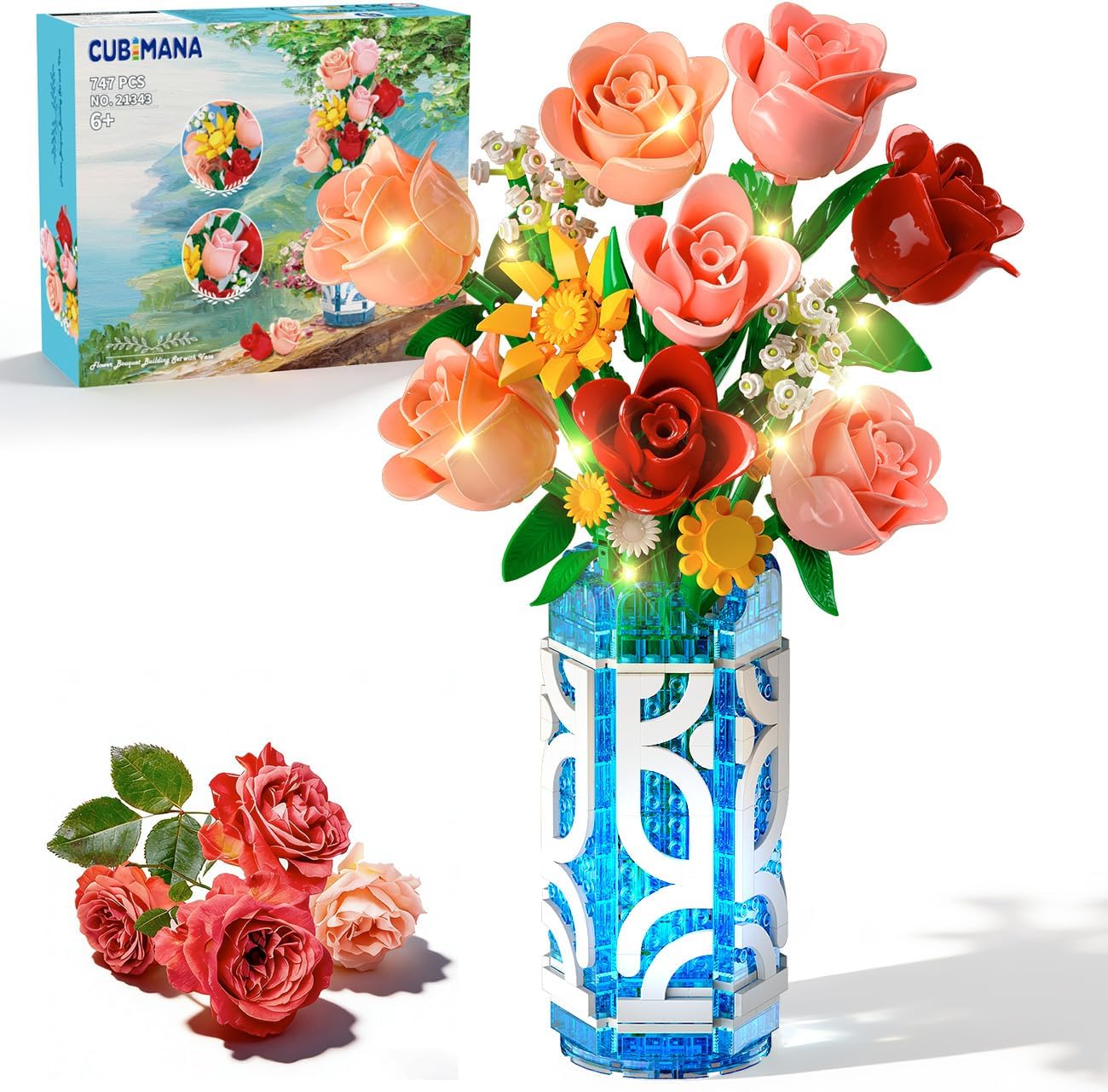 - 【14PCS Vibrant Flowers Bouquet】Experience the essence of nature's beauty with CUBIMANA's bouquet building set. Our flowers burst with lifelike hues, capturing the essence of freshly picked blooms. From the passion of red roses to the tender grace of pink, the sophistication of champagne roses, the delicate charm of baby's breath, the joy of sunflowers, to the warmth of daylilies, each petal is crafted for a truly realistic floral encounter.