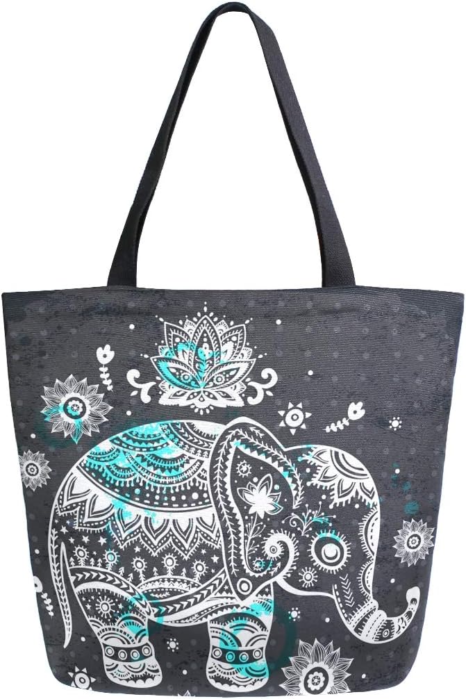 Naanle Animal Elephant Canvas Tote Bag Large Women Casual Shoulder Bag Handbag, Floral Elephant Reusable Multipurpose Heavy Duty Shopping Grocery Cotton Bag for Outdoors.