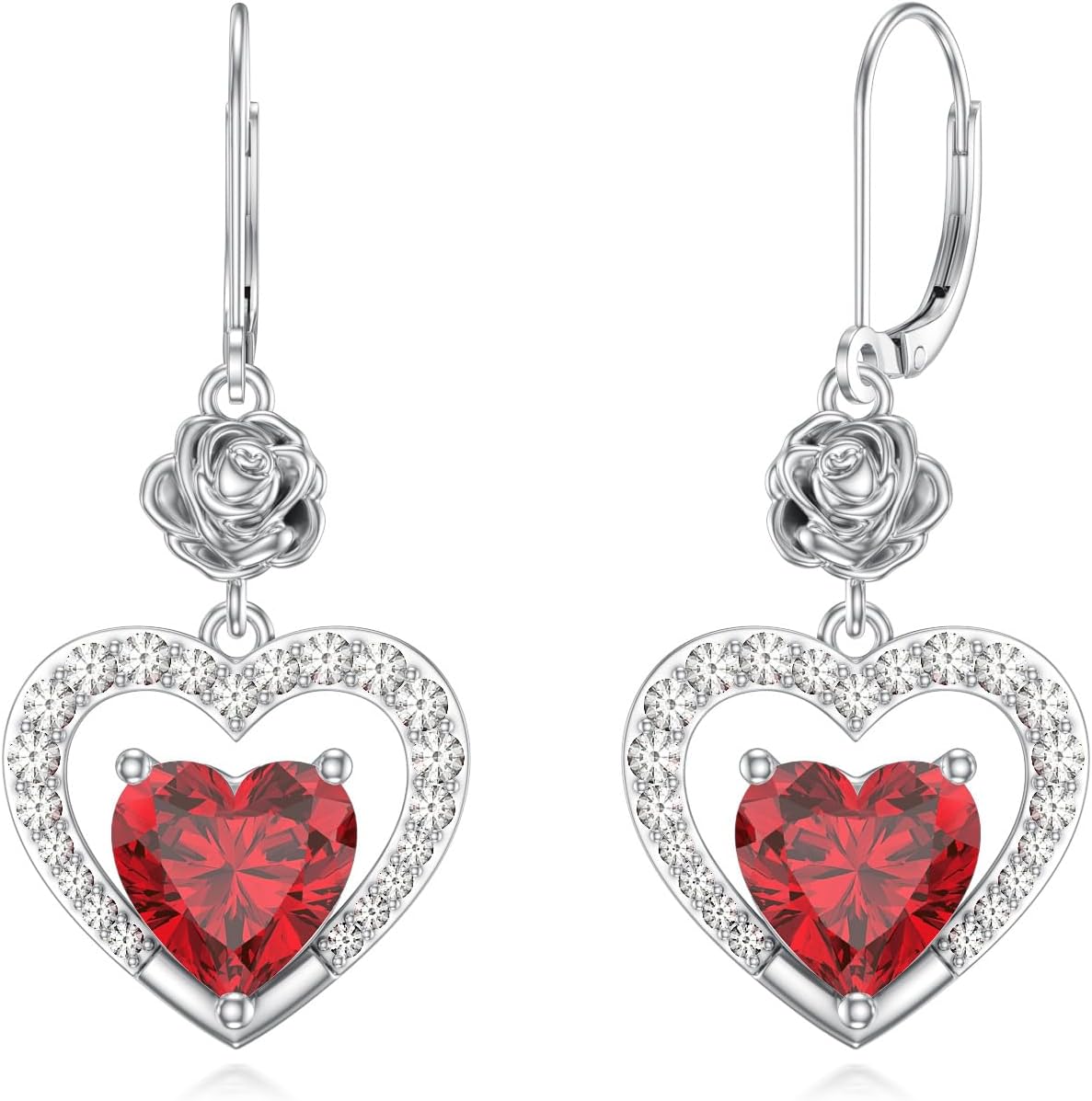 PROESS Sunflower/Rose/Daisy/Lily/Lotus/Hibiscus Dangle Earrings 925 Sterling Silver Heart Zircon Flower Earrings for Women Floral Dangle Earrings Jewelry Gifts
