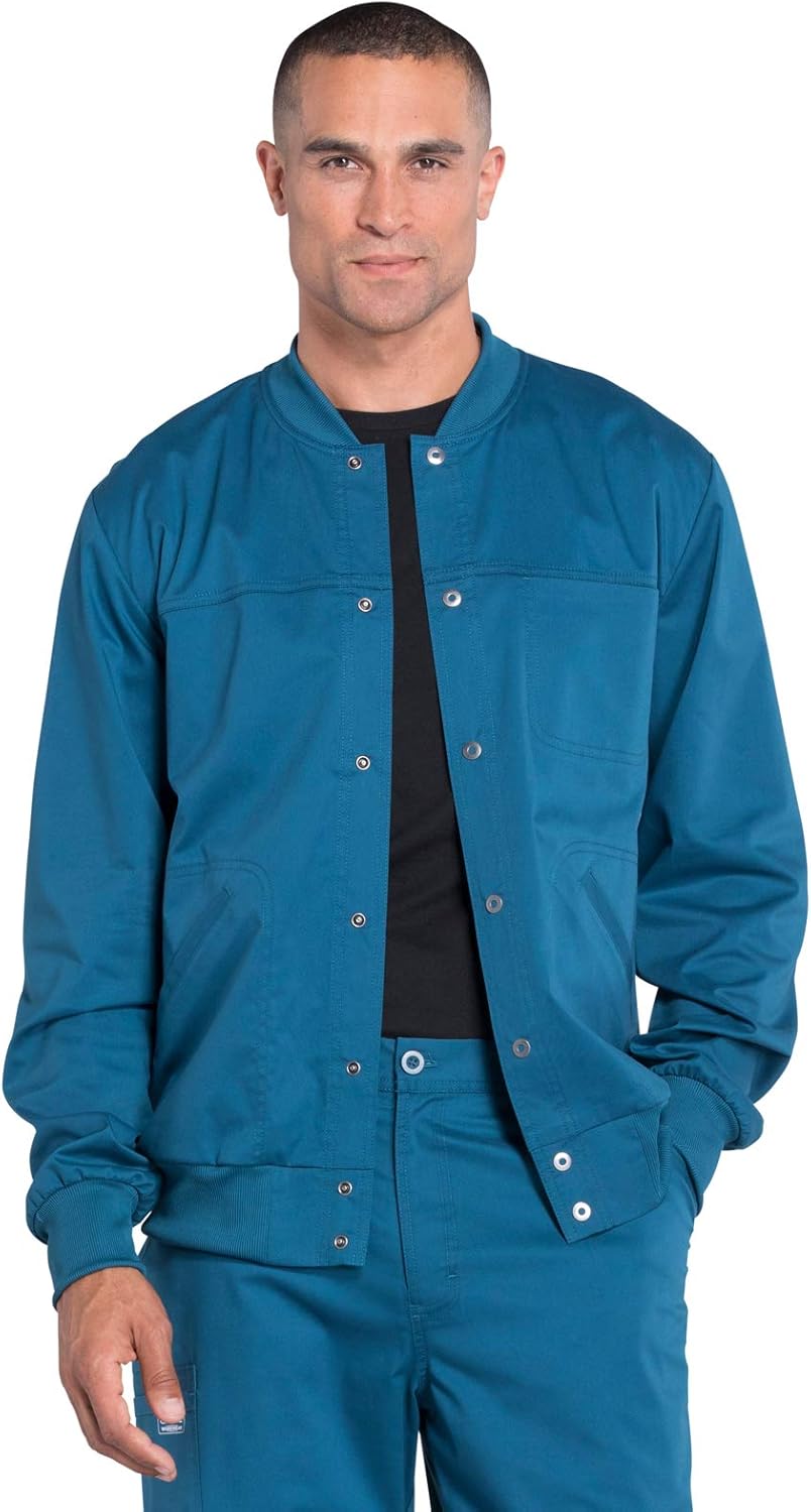 Cherokee Men Scrubs Jacket Workwear Core Stretch Snap Front Plus Size WW330, 5XL, Caribbean Blue
