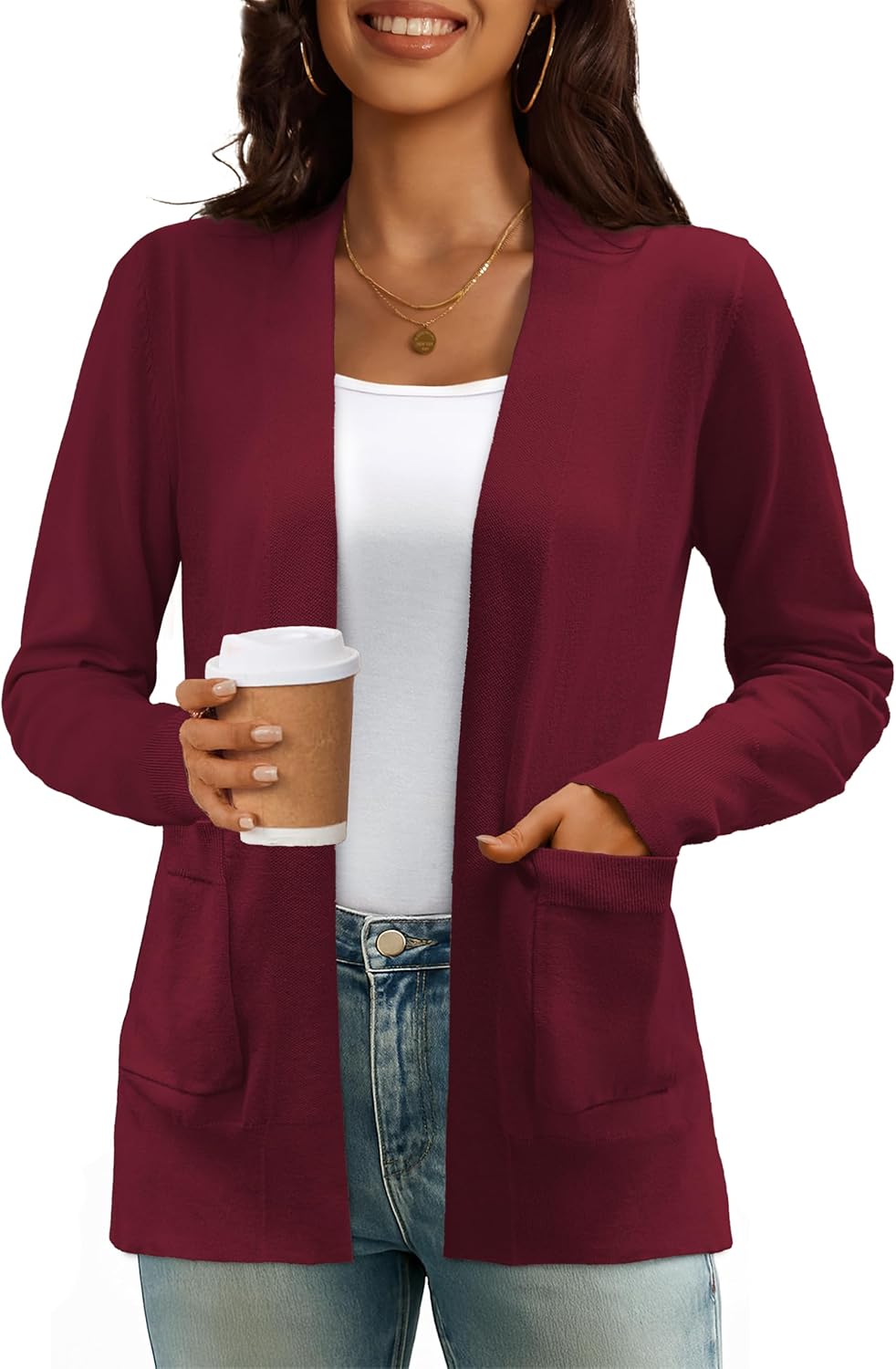 OmicGot Women's Cardigan Sweaters with Pockets Long Sleeve Casual Open Front Knit Cardigans S-XL